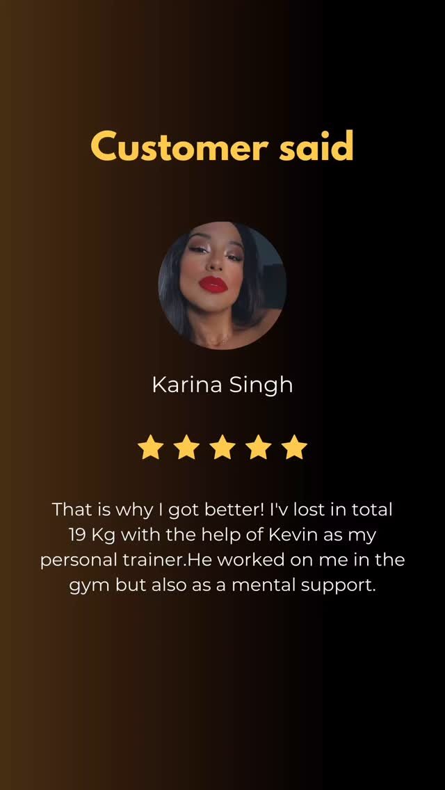 “That is why I got better! I'v lost in total 19 Kg with the help of Kevin as my personal trainer.He worked on me in the gym but also as a mental support.”