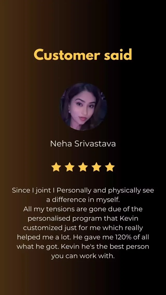“Since I joint I Personally and physically see a difference in myself. All my tensions are gone due of the personalised program that Kevin customized just for me which really helped me a lot. He gave me 120% of all what he got. Kevin he's the best person you can work with.”